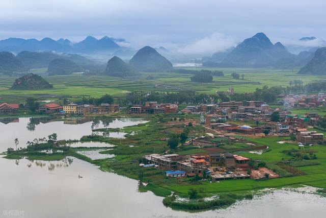 五六月的普者黑,桃花谢了,荷花没开。民宿窗外只有山水和新长的稻田。