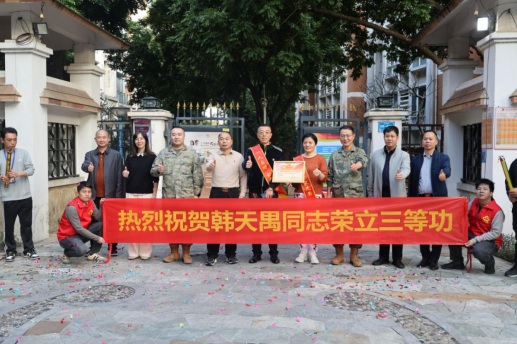 据悉,韩天禺于2022年从佛山三水中学考入国防科技大学工程学院,因在2024—2025学年中成绩突出、表现优异,荣立三等功。慰问组一行热情为军属佩戴绶带,宣读立功喜报,随后将喜报和慰问品交到家属手中,向他们表示衷心祝贺和诚挚问候。