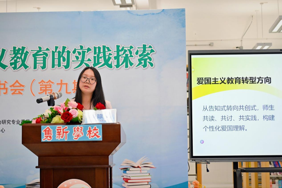 毓秀小学专职副书记陈颖谊以《践行理解性教学,深化爱国主义教育》为题分享读书感悟,结合《让学生创造着长大》阐释理解性教学核心理念。她聚焦“大观念引领锚定内核、真实情境驱动深化体验、实践迁移赋能践行担当”三大关键,学校通过红色诗词诵读、英雄故事分享等活动,推动教学从知识传递转向素养培育。
