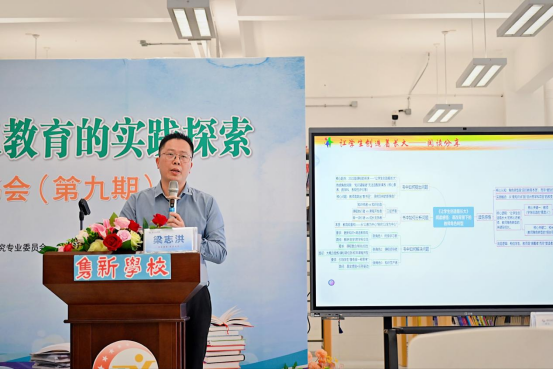 钟村中心小学校长梁志洪以《新课标下的教师角色重构——赋能学生在创造中成长》为主题分享心得,将视角聚焦教师成长。他重点解读了书中的核心理念,提出教师是学生创造性成长的“摆渡人”,而校长是教师转型的“搭台引路人”,要助力学生紧扣国家需求开展创造,厚植家国情怀,树立“我为中国创造”的信念。
