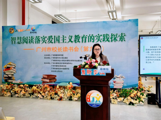 钟村锦绣小学校长陈燕贞依托《让学生创造着长大》跨学科学习理论,围绕《跨学科主题阅读赋能传统节日劳动教育》分享实践。她构建三层级阅读体系,依托广州智慧阅读平台搭建三大支架,通过项目式阅读融合多学科知识与传统节日劳动教育,助力学生传承文化、厚植家国情怀。