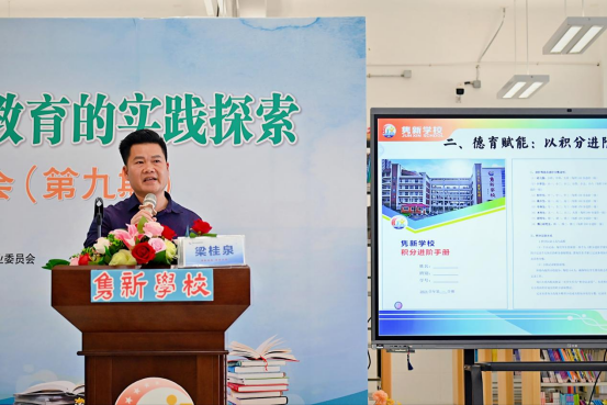 隽新学校校长梁桂泉聚焦《让学生创造着长大》第九章,以《践行素养评价理念,赋能学生全面发展》为题分享实践经验。他提出的“三启四学五评”模式,从课堂深耕、德育赋能、家校协同三个维度,阐释了如何以多元评价让探究与创造成为学生日常,提供了可复制推广的实践样本。