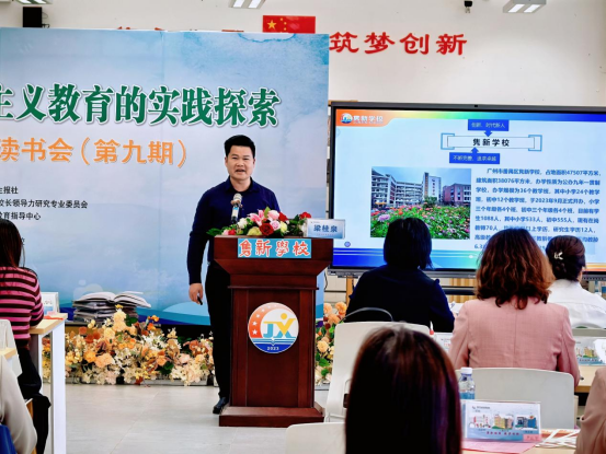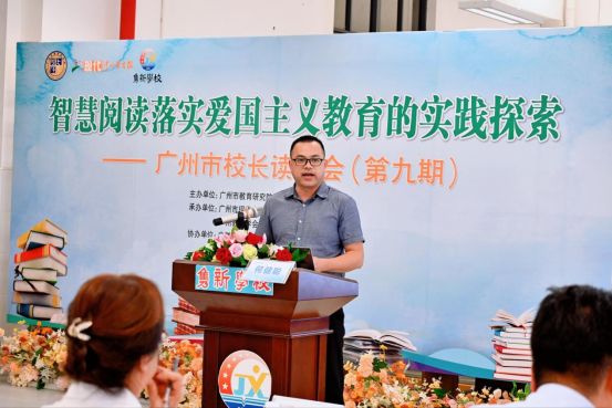 东道主隽新学校校长梁桂泉登台致辞,介绍学校“以文化育人,以阅读立校”特色,分享书香校园建设与智慧阅读实践成果,为读书会奠定“理论结合实践”的交流基调。
