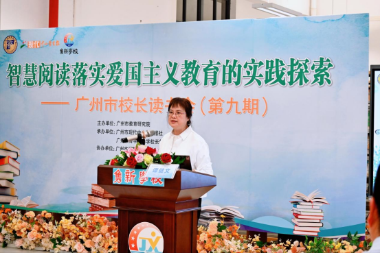 随后,广州市教育研究院学术顾问谭健文老师登台进行点评。她首先高度肯定了所有分享者的发言价值,认为其契合教育前沿趋势,还能凝聚团队思想、助力校长提升领导力。然后,她深入剖析了“智慧阅读与爱国主义教育”的核心关系,并提出爱国教育应融入显性课程,通过多元文化渗透培育家国情怀;智慧阅读需打破割裂,实现全学科、全流程融合以发挥教育功能,为活动提供了专业指引。
