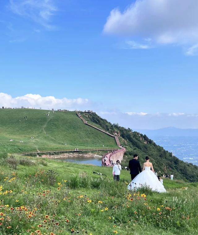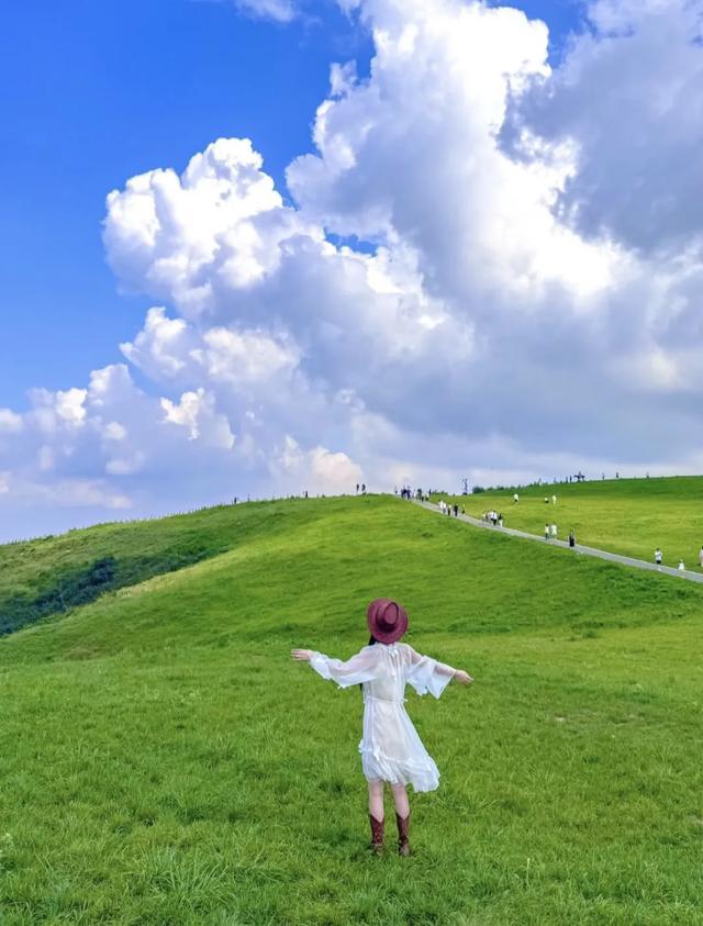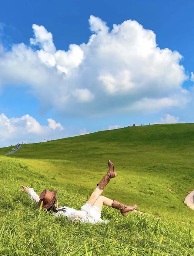 坐在山顶上,感受那自由自在的风,脚下是柔软的草地,周围是大自然的拥抱,简直太治愈了!!日落的时候,超级浪漫,走走拍拍很漂亮,很适合情侣呦~